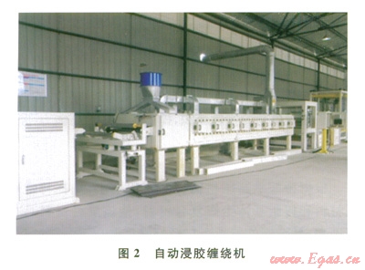 纏繞成型是在控制纖維張力和預定線型的條件下,利用了浸膠機、纏繞機等設備將連續(xù)的纖維粗紗或布帶浸漬了特殊樹脂膠液后纏繞在相應制品內(nèi)腔尺寸的芯模或內(nèi)襯上,使用固化爐控制升溫率加熱至設定溫度,使復合材料固化成要求的形狀。