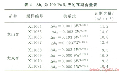 從表4可以看出,龍山礦無煙煤Dh2為200 Pa對應(yīng)的瓦斯含量為10.8~14.0m3/t,平均為l2.4m3/t;大眾礦貧煤對應(yīng)的瓦斯含量為9.3~10.4m3/t,平均為9.9m3/t。從實(shí)驗(yàn)結(jié)果來看,龍山礦瓦斯含量在10.8m3/t就有百丁能具有突出危險(xiǎn)性;而大眾礦瓦斯含量在9.3m3/t就可能發(fā)生突出。