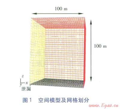 空間模型(見(jiàn)圖l)長(zhǎng)200m、寬200m、高l00m,在200m×200m的平面中心設(shè)置1個(gè)2m×2m