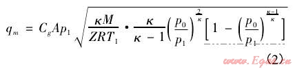 式中,β為臨界壓力比,p0為環(huán)境絕對壓力,pe為泄漏口燃?xì)獾呐R界壓力,κ為燃?xì)獾褥刂笖?shù)。κ是溫度的函數(shù),理想氣體的κ可近似為定值,對于天然氣,κ可近似取1.29。假設(shè)p1為管道內(nèi)燃?xì)獾慕^對壓力,當(dāng)p0/p1>β時(shí),燃?xì)庠谛孤┛谔帉儆趤喡曀倭鲃?dòng),反之為聲速流動(dòng)。根據(jù)本文燃?xì)夤艿拦ぷ鲏毫Γ纱_定泄漏時(shí)氣體流動(dòng)屬于亞聲速流動(dòng),因此燃?xì)庑孤┑馁|(zhì)量流量可通過式(2)計(jì)算獲得: