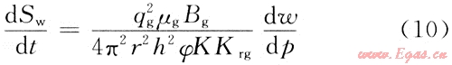 由于氣井開始生產(chǎn)后,地層壓力下降,水相開始蒸發(fā),氣體中的含水量逐漸增加,在無邊底水的儲層中會造成地層含水飽和度的減小,因此有必要研究近井區(qū)含水飽和度的變化規(guī)律。
