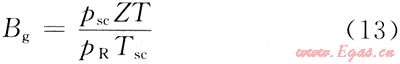 將psc=0.101MPa,Tsc=293K和式(13)代入式(12),并改為以SI制礦場實用單位表示時式(12)為: