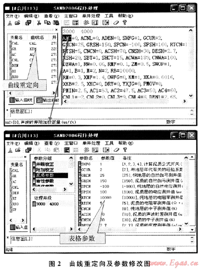 無論是文本方式還是表格方式下,均可快速得到當(dāng)前參數(shù)的交會圖[5],以便用戶快速修改處理參數(shù),提高工作效率。 2 儲層參數(shù)計算模塊
