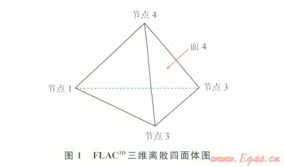 FLAC3D將求解物體離散為一系列如圖1所示的四面體單元,并采用插值函數(shù)