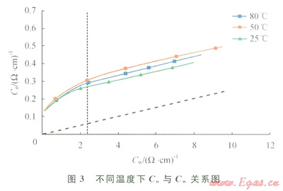 由式(3)得到25℃時的Cw為69.8(W·cm)-1,遠大于2.5(W·cm)-1的界限,再次證明臺南氣田的黏土附加導電作用是可以忽略的。同時也說明,該地區(qū)地層水礦化度較高,是造成電阻率絕對值低的主要原因之一。