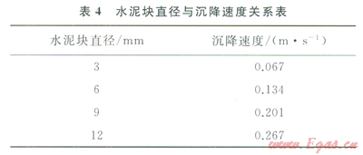要返出地面液體的上升速度為固體沉降速度的2倍及以上,固體物質(zhì)才能被順利的帶出地面,達到洗井的效果。根據(jù)力學分析及水動力學分析,可以得到固體在液相中的重力沉降速度,密度為3.0~3.15g/cm3硅酸鹽水泥在密度為1.3g/cm3的鉆井液,可計算得沉降速度詳見表4。
