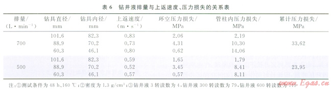 當洗井的排量達到500L/min時,最小上返速度0.52m/s,累計壓力損失23.95MPa,能夠順利帶出12mm及以下直徑的水泥塊(表6),基本滿足洗井要求。