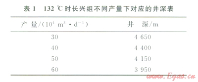 元壩氣陽長興組儲層溫度在160℃,H2S平均含量5.14%,可能有單質(zhì)硫的存在,依據(jù)ISO 15156及腐蝕評價試驗,結(jié)合產(chǎn)量預測井筒內(nèi)部的溫度分布,在井深小于等于4000m選用4C類鎳基合金油管、718材質(zhì)完井投產(chǎn)工具,井深大于等于4000m選用4D類鎳基合金材質(zhì)及725材質(zhì)完井投產(chǎn)工具[3-4]。132℃時長興組不同產(chǎn)量下對應的井深如表1所示。