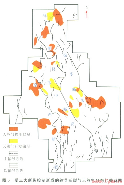 2.1 三大斷裂附近天然氣聚集。氣源供給充足