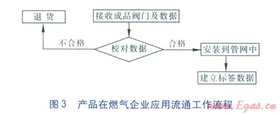 標(biāo)簽在閥門(mén)制造企業(yè)實(shí)現(xiàn)應(yīng)用流通的工作流程和產(chǎn)品在燃?xì)馄髽I(yè)應(yīng)用流通的工作流程見(jiàn)圖2、3。