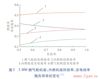 目前,相同發(fā)電功率的燃氣輪機組、內(nèi)燃機組的使用壽命、大修間隔時間基本相同,內(nèi)燃機組的單位發(fā)電功率運行維護費用略高于燃氣輪機組,但單位發(fā)電功率造價約為燃氣輪機組的50%。此外,對于具體的分布系統(tǒng),經(jīng)濟性還與全年負荷波動、當?shù)啬茉磧r格以及環(huán)保要求等指標有關(guān)。