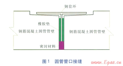 頂管設(shè)計(jì)參照北京鐵路局(京橋通—5002)《鐵路頂管通用圖》。頂進(jìn)管道采用鐵路專用雙插口鋼筋混凝土圓管,規(guī)格為Ø1750mm Ti-S,編號(hào)為T12,每節(jié)長(zhǎng)3m,管壁厚度為175mm,圓管結(jié)構(gòu)控制頂力為7450kN,頂進(jìn)時(shí)需在圓管外壁涂石蠟減阻。圓管管口接縫見(jiàn)圖1。
