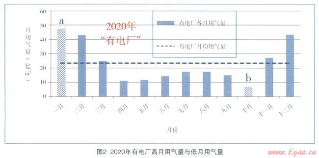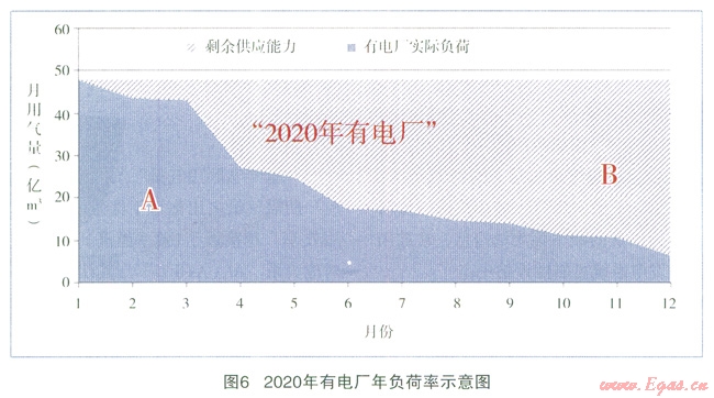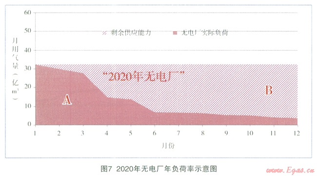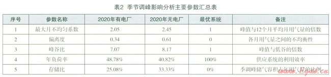預(yù)計(jì)到2020年,“有電廠”的偏離度為0.34,“無電廠”為0.61,“有電廠”可以明顯縮小各月間用氣的不均勻性,使一年內(nèi)的負(fù)荷變化趨于平衡。