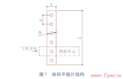 矩形平翅片作為傳統(tǒng)翅片管換熱器的組成部分,具有結(jié)構(gòu)簡單、清洗方便、加工容易、適應(yīng)性強等優(yōu)點,但無論在干工況還是濕工況下,其換熱效果均不理想,逐漸被波紋形翅片、條縫形翅片、百葉窗形翅片等高效翅片取代[1]。其中最受關(guān)注的是百葉窗形翅片在家用空調(diào)換熱器的換熱效果研究,在20世紀80年代,國外學者通過二維數(shù)值模擬對百葉窗形翅片管換熱器的換熱效果進行模擬研究[2-5]。但由于結(jié)霜等原因,翅片孔容易被結(jié)霜堵塞,喪失強化傳熱特征,尋找在制冷工況下具有高效換熱效果的新型翅片,對節(jié)能減排具有重大意義。