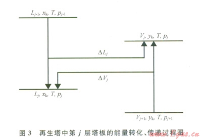 3表示再生塔中第j層塔板上能量的傳遞與轉(zhuǎn)換過程?,F(xiàn)以其作為研究對象,對該層塔板進行分析。