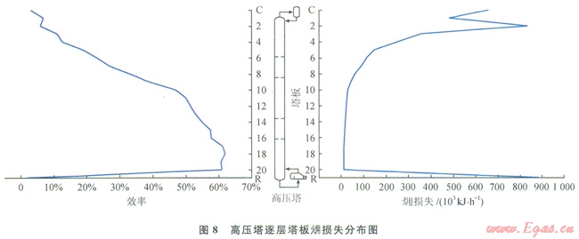 8、9為高壓塔和低壓塔逐層塔板損失分布圖。
