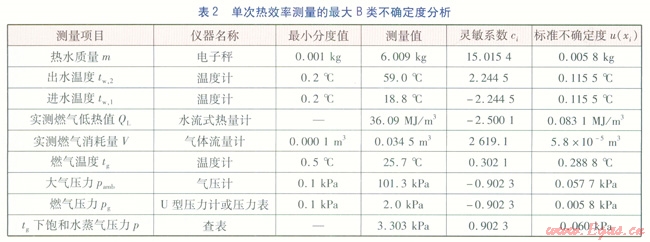 以下選用各次測量中B類不確定度最大的一次實驗數(shù)據(jù)進行分析,單次熱效率測量的最大B類不確定度分析見表2。