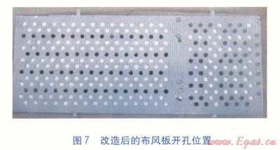 由測試結(jié)果可知,改造后的熱效率有所提高,平均提高了1.06%(絕對值)。煙氣中CO的體積分?jǐn)?shù)顯著下降,平均下降了30%。這說明燃?xì)馀c空氣的混合更加均勻,燃燒狀況得以改善,有效地降低了煙氣中CO的含量。布風(fēng)板規(guī)則的開孔位置對熱水器的熱效率沒有影響,降低了布風(fēng)板的設(shè)計(jì)難度。
