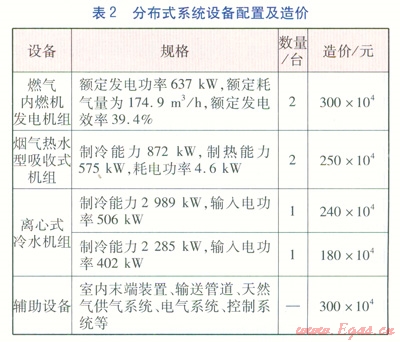 由以上分析可知,分布式系統(tǒng)的能效水平優(yōu)于直燃吸收式機組。但分布式系統(tǒng)增加r發(fā)電設備、離心式冷水機組等設備,使得分布式系統(tǒng)更為復雜,設備造價也相應更高。下面以佛山地區(qū)某商業(yè)建筑為例,對兩種供能系統(tǒng)的經(jīng)濟性進行比較。