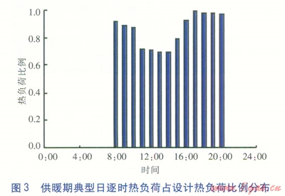 佛山地區(qū)某商業(yè)建筑總建筑面積約13×104m2,供冷期為4月至ll月,單位建筑面積冷負荷為100W/m2,供暖期為12月至次年1月,單位建筑面積熱負荷為15W/m2,工作時間為8:00—20:00。供冷期典型日逐時冷負荷占設計冷負荷比例分布見圖2,供暖期典型日逐時熱負荷占設計熱負荷比例分布見圖3。
