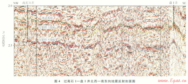 盆地內(nèi)西南側剝蝕較強烈,周公l、漢深1、老龍1井與威117井的下寒武統(tǒng)麥地坪組分別與燈影組上、下亞段不同層段相接觸,周公1井與漢深l井已剝蝕至燈影組下亞段,老龍l井與威117井燈影組上亞段白云巖層殘厚15.5m與31.55m。盆地中部剝蝕作用較弱,如高科l、安平1井與女基井燈影上段白云巖層分別殘厚365.5m、339.38m與240.8m。向川中東南側剝蝕作用逐漸增強,地震剖面顯示明顯的剝蝕削截現(xiàn)象(圖4),荷深1井燈影組上亞段白云巖層殘厚僅為2.2m。