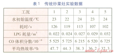 為驗證新型炒菜灶的性能,將其與傳統(tǒng)炒菜灶進(jìn)行熱態(tài)對比實驗。實驗主要對比炒菜灶的熱效率、節(jié)能效果、排放特性。