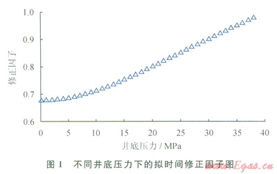 氣體具有強(qiáng)可壓縮性,其黏度(mg)、偏差因子(Zg)、體積系數(shù)(Bg)等都是關(guān)于壓力的強(qiáng)非線(xiàn)性函數(shù),如果直接對(duì)氣體滲流控制方程中的擴(kuò)散系數(shù)進(jìn)行強(qiáng)行近似必然會(huì)引起較大的誤差。使用擬時(shí)間函數(shù)(tg)能夠?qū)怏w滲流問(wèn)題等效轉(zhuǎn)化為液體滲流問(wèn)題,同時(shí)改進(jìn)了“強(qiáng)行近似擴(kuò)散系數(shù)(1/jmgcg)為常數(shù)”的假設(shè)條件,結(jié)果必然使得理論描述更接近于礦場(chǎng)實(shí)際情況,也方便液體研究領(lǐng)域內(nèi)成果的參考和借鑒。其中,擬時(shí)間定義為: