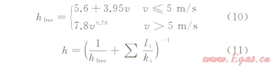 式中hfree為模板熱對(duì)流系數(shù),kJ/(m2·h·℃);v為風(fēng)速,m/s,文中取v為5.6m/s;li為混凝土模板厚度,文中取li為0.018m;ki為模板導(dǎo)熱系數(shù),文中取ki為0.837kJ/(m·h·℃)。