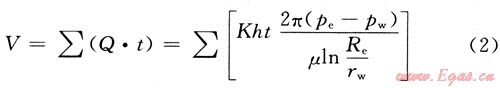 發(fā)現(xiàn)溢流關(guān)井后,地層氣體在地層壓力與井底壓力的壓差作用下會向井筒續(xù)流,續(xù)流作用的強弱取決于井底壓差和地層系數(shù)的大小。續(xù)流過程中地層氣體侵入體積公式可表示為: