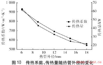 從以上分析可知,在換熱器其他結(jié)構(gòu)尺寸及其他條件不變的情況下,減小熱管外徑能夠增大換熱器的傳熱量,并能滿(mǎn)足較小設(shè)計(jì)尺寸的要求,但要考慮熱管的強(qiáng)度要求以及連續(xù)流動(dòng)極限的限制。