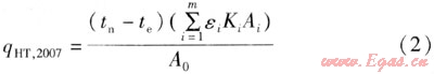 式中qHT,2007——2007版中單位建筑面積通過圍護(hù)結(jié)構(gòu)的傳熱耗熱量,W/m2