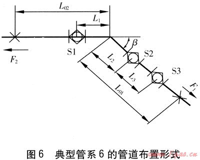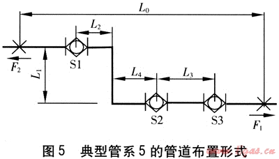 本工程為某電廠廠區(qū)內(nèi)汽輪機(jī)房至用戶分汽缸之間的蒸汽管道,管道規(guī)格為D 529×10,設(shè)計(jì)壓力為1.6MPa,設(shè)計(jì)溫度為300℃。由于該廠區(qū)地下管線較多,無(wú)法采用直埋敷設(shè),因此考慮采用架空敷設(shè)方式,但受空間限制,只能充分利用廠區(qū)現(xiàn)有綜合管道支架。由于現(xiàn)有綜合管道支架上有多種類型管道,管道支架受力復(fù)雜。為減少新增管道對(duì)管道支架受力的影響,保證運(yùn)行的安全可靠,決定選用鉸鏈波紋管補(bǔ)償器。管道布置形式見(jiàn)圖7。