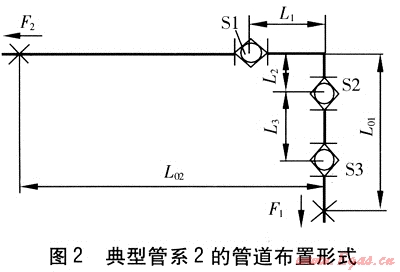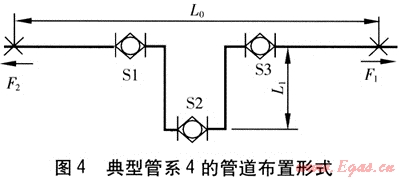 鉸鏈波紋管補(bǔ)償器主要應(yīng)用于架空、管溝、局部架空敷設(shè)的管道中,任何復(fù)雜的管線,都可以通過(guò)固定支座分割成若干簡(jiǎn)單形狀的管段[2]。這里主要研究鉸鏈波紋管補(bǔ)償器在典型管系中的相關(guān)計(jì)算。