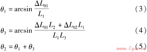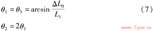 式中θ1、θ2——鉸鏈波紋管補(bǔ)償器S1、S2對(duì)應(yīng)的角位移,(°)