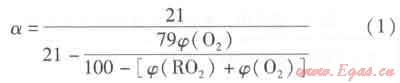 通過式(1)可計(jì)算出該臺(tái)鍋爐運(yùn)行時(shí)的過剩空氣系數(shù)。