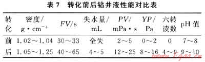 該井于2010年4月11日22:00采用Φ346mm鉆頭第一次開鉆鉆進(jìn),在井深2569m采用Φ215.9mm牙輪鉆頭開始定向造斜,鉆遇劉家溝組、石千峰組、石盒子組地層;5月8日8:O0第二次開鉆斜井段完鉆,完鉆井深3460m,本段進(jìn)尺891m(井段2569~3460m)。斜井段是這口井的重點(diǎn),也是難點(diǎn)。這口井在劉家溝上部開始定向造斜,進(jìn)入“雙石層”后,無固相聚合物鉆井液體系已不能滿足下一步的鉆進(jìn)要求,為保證斜井段的安全快速鉆進(jìn),預(yù)防井壁坍塌,提高鉆井液潤滑防卡和攜帶巖屑能力,需要轉(zhuǎn)化為鉀鹽聚磺鉆井液體系(表7)。