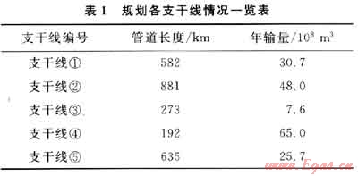 擬對(duì)某干線管道進(jìn)行擴(kuò)建,規(guī)劃的各支干線情況如表1所示。以支干線①為例,對(duì)正交試驗(yàn)設(shè)計(jì)方法的選擇過程進(jìn)行說明。