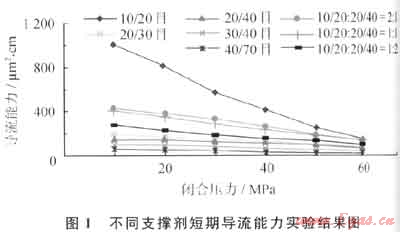 對(duì)20/40目壓裂支撐劑再進(jìn)行不同粒徑細(xì)分,同時(shí)進(jìn)行相關(guān)條件下的室內(nèi)物理性能評(píng)價(jià),評(píng)價(jià)其裂縫導(dǎo)流能力變化是很重要的。將現(xiàn)用20/40目的支撐劑(陶粒、石英砂)按照新的物理分類進(jìn)行不同方式的組合,結(jié)合蘇里格氣田壓裂所獲得的地層原始裂縫閉合應(yīng)力,通過室內(nèi)評(píng)價(jià),優(yōu)化支撐裂縫導(dǎo)流能力,可提高氣井單井產(chǎn)量。