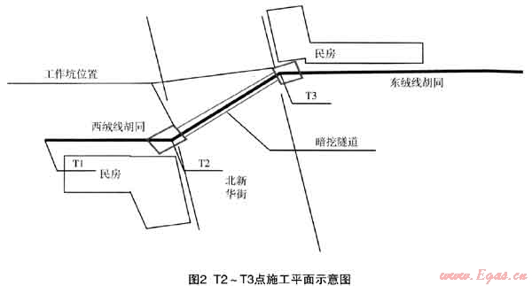 由于2008年為奧運年,北新華街及西絨線胡同剛剛重新修整完畢,根據(jù)市交管局要求不得破路施工。因此,整體工程T1~T3點采用非開挖施工,T3~T4點采用明開挖施工。