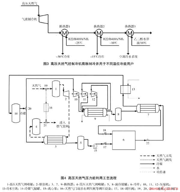 摘要:高壓管網(wǎng)輸送的天然氣在調壓過程中釋放巨大的壓力能,通過降壓設備將這部分能量有效回收,用于發(fā)電、天然氣脫水、輕烴分離、LNG及NGH調峰、橡膠粉碎和冷庫等領域。具體描述了聯(lián)合循環(huán)發(fā)電和回收壓力能所制得的冷能在冷庫中的運用。針對天然氣供氣不平衡、調壓站分布不集中以及能量高效利用的問題,提出了改進方案,充分利用膨脹機輸出的功驅動壓縮機等設備的運轉,將膨脹制得的冷量運用在相應的冷產業(yè)中,保證了壓力能的高效利用。