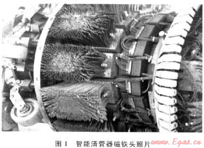 近年來,長輸天然氣管道加強了在役檢測,廣泛采用了數字化的智能清管器,與傳統(tǒng)的“投球”清管后再進行無損檢測作業(yè)相比,使用智能清管器具有開挖面積小、融清潔與診斷為一體的優(yōu)勢,但在實施智能清管作業(yè)過程中,受清管器發(fā)射的磁場波影響,管道帶磁情況較為嚴重。智能清管器磁鐵頭(其示意圖如圖1所示)在清管作業(yè)過程中,由鐵毛刷下端的磁鐵塊不斷向管內壁發(fā)出磁場波,導致管道帶磁。北方某公稱直徑1016mm的天然氣輸氣管道受此影響,導致換管碰口施工中無法正常進行根焊作業(yè)。