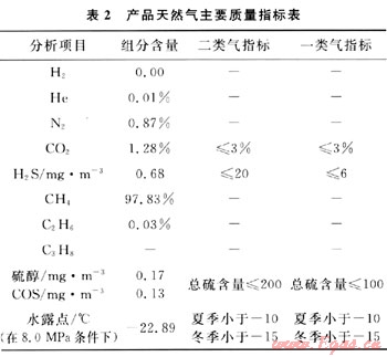 針對高含硫、含碳天然氣的凈化新工藝技術(shù)在普光氣田得到成功的應(yīng)用。從2009年10月普光天然氣凈化廠第一聯(lián)合裝置順利投產(chǎn)以來,目前全廠6套聯(lián)合裝置均已開車成功,裝置運行平穩(wěn),主要工藝技術(shù)指標、產(chǎn)品質(zhì)量指標達到設(shè)計要求,硫磺回收率高于99.8%,尾氣排放中S02低于960mg/m3,滿足GB 16297—1996環(huán)保要求。運行1年多來,凈化天然氣產(chǎn)品質(zhì)量超過了設(shè)計要求的《天然氣》(GB 17820—1999)二類氣標準,達到一類氣標準。目前的產(chǎn)品氣技術(shù)質(zhì)量指標見表2。