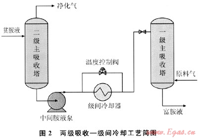 2)應(yīng)用兩級吸收級間胺液冷卻技術(shù),可以部分脫除原料氣中的C02,提高選擇性吸收能力。