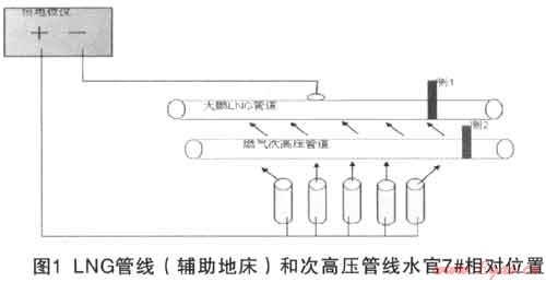由于部分路段次高壓天然氣管道與上游LNG管道和成品油管道并行(采用外加電流陰極保護),為了判斷LNG管線對次高壓管線的影響,技術(shù)人員進行了現(xiàn)場測試,主要包括:LNG管線的保護電位、次高壓管線保護電位,并在LNG管線平湖門站陰極保護站恒電位儀開10分鐘一停10分鐘一開10分鐘共30分鐘的時間段內(nèi),用記錄儀檢測了次高壓管線的陰極保護電位波動情況。通過檢測發(fā)現(xiàn),LNG管線和次高壓管線閉路電位都不穩(wěn),波動較大。