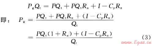 從構(gòu)成看,它又等于購入天然氣的成本、天然氣與投入的其他生產(chǎn)要素一樣按同行業(yè)未使用天然氣企業(yè)平均生產(chǎn)成本利潤率均攤的利潤和天然氣應(yīng)獲得的“額外利潤”3項之和,即:PQt+PQtRn+(I-CpRn)