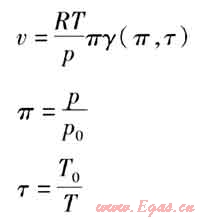 在區(qū)域2中,γ(π,τ)由理想氣體部分和剩余部分的無量綱Gibbs比自由能組成,以折算壓力π和折算溫度τ為獨(dú)立變量。比體積與基本方程的關(guān)系表達(dá)式如下: