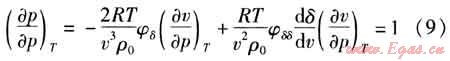 式中φδτ——φ(δ,τ)對(duì)折算密度和折算溫度的二階偏導(dǎo)數(shù)