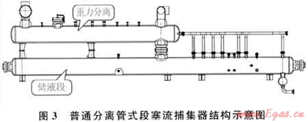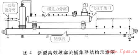 3) 捕集集氣干線氣液混輸來氣的段塞流。
