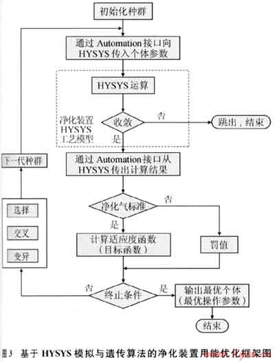 摘要:為了降低含硫天然氣處理過程中的能量消耗和操作成本,應(yīng)用工業(yè)流程模擬軟件HYSYS建立了含硫天然氣凈化裝置工藝模型,并基于數(shù)據(jù)對象接口(Automation)技術(shù)開發(fā)了HYSYS與矩陣數(shù)值分析軟件Matlab之間的接口程序,將HYSYS工藝模型作為適值函數(shù)計算的基礎(chǔ)并入遺傳算法(GA)中,從而建立了基于HYSYS模擬和遺傳算法的天然氣凈化裝置用能優(yōu)化模型。應(yīng)用此優(yōu)化模型對川渝地區(qū)某50×104m3/d天然氣凈化裝置的用能進(jìn)行了操作參