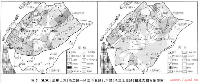 SLSC1層序基準面上升期對應湖盆擴張期,是須二段-須三下亞段沉積期。受早印支運動影響,古龍門山諸島鏈持續(xù)擴大上升,形成摩天嶺隆起及九頂山隆起等,并逐漸向東推進。
